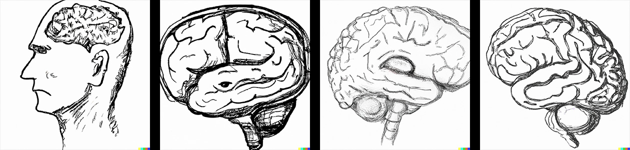 Beim ersten sieht man gar kein Hirn. Das zweite Bild – hä, keine Ahnung, was das war. Beim dritten ist das Hirn zu klein. Das vierte Bild ist genial. Was für ein Hirn! Wie nur kommt Dall-E auf eine solche Visualisierung?